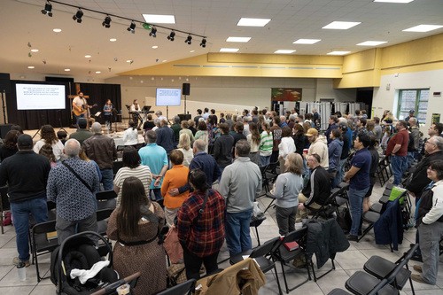 These gatherings are relatively informal in tone—there's no dress code and we meet in an elementary school cafeteria. Coffee is available, and there's an opportunity for you to learn more about who we are and some of the ways we disciple one another during the week. Our services normally run for about an hour and 20 minutes. We would love for you to join us! If you need help navigating your Sunday morning, stop by our "New Here" station in the lobby and one of our volunteers will welcome you.